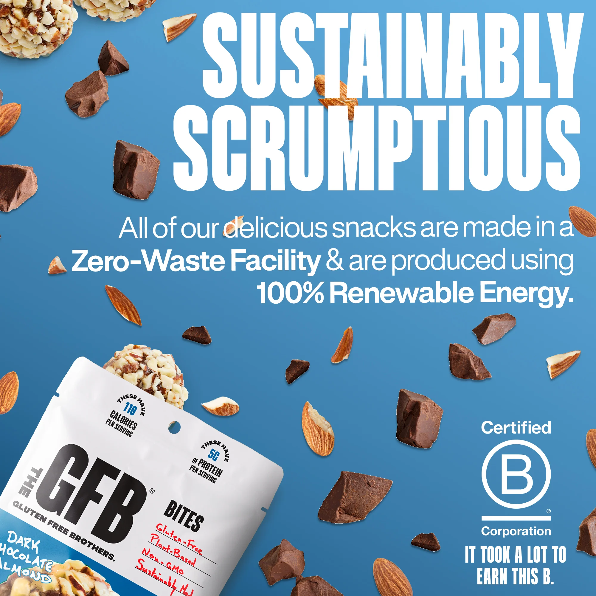 NOTE: All of our products are Certified Gluten Free, Certified non-GMO, Vegan, Certified Kosher, Soy-Free, and made in our very own, dedicated gluten-free facility utilizing sustainable business practices. The GFB is a certified B Corp.