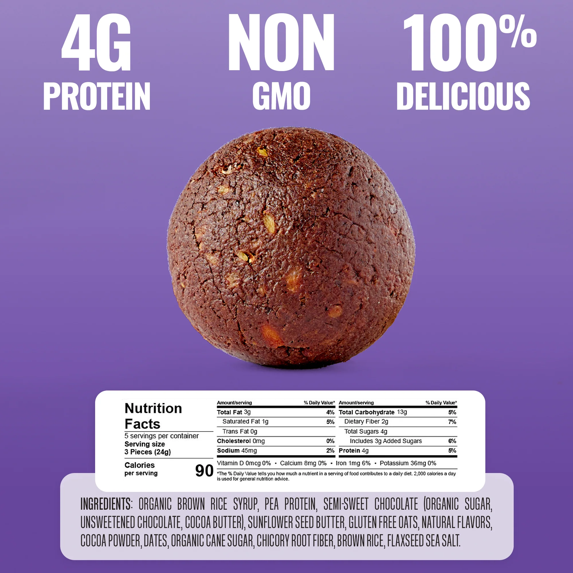 - RIDICULOUSLY TASTY FUDGE BROWNIE BITES: These mouth-watering fudge brownie cookie bites are pleasantly soft and chewy while offering 5 grams of protein in each serving. Our easy to store 6 x 4oz bags helps you bring snacks on the go