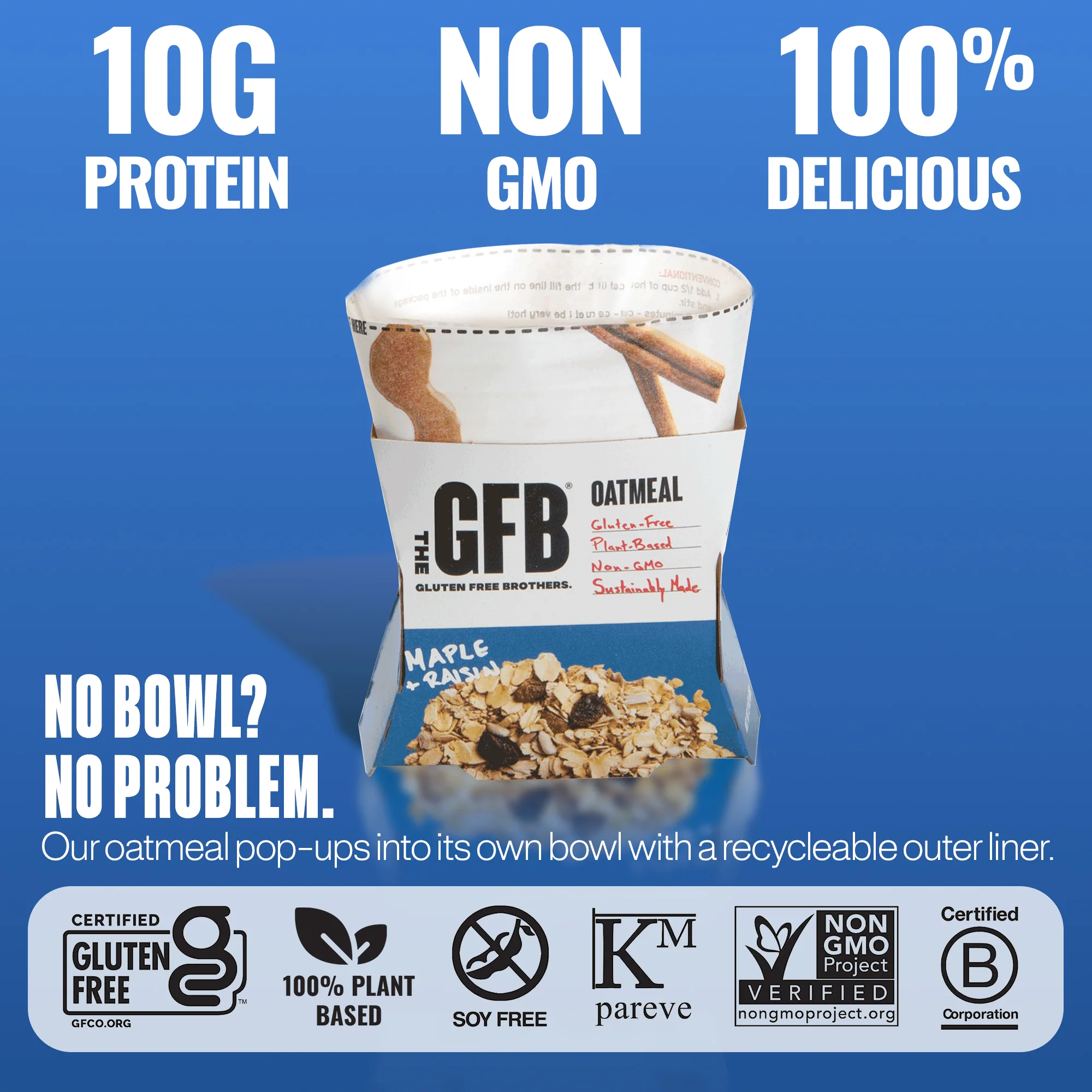 NOTE: All of our products are Certified Gluten Free, Certified non-GMO, Vegan, Certified Kosher, Soy-Free, and made in ourĀ very own, dedicated gluten-free facility utilizing sustainable business practices. The GFB is a certified B Corp.